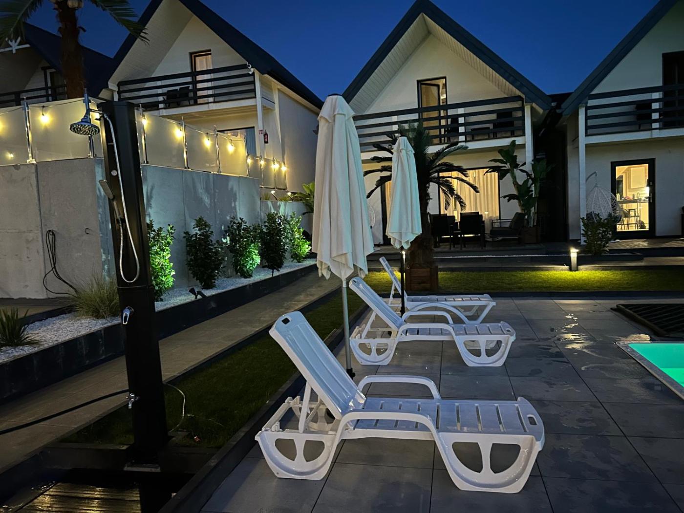 Domek z 2 sypialniami. Boasting a private entrance, this air-conditioned chalet features 1 living room, 2 separate bedrooms and 1 bathroom with a walk-in shower and a hairdryer. Guests will find a stovetop, a refrigerator, kitchenware and a microwave in the well-fitted kitchenette. The chalet also comes with a barbecue. Featuring a terrace with garden views, this chalet also features a tea and coffee maker and a flat-screen TV with cable channels. The unit has 5 beds. Domek - 9 osobowy. Powierzchnia pokoju ok.: 45 mkw. ;