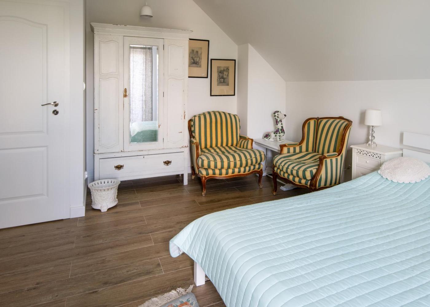 Domek z 5 sypialniami. This spacious holiday home features 1 living room, 5 separate bedrooms and 2 bathrooms with a walk-in shower and a bath. Guests will find a stovetop, a refrigerator, a dishwasher and kitchenware in the kitchen. The holiday home also comes with a barbecue. Boasting a terrace with lake views, this holiday home also features a washing machine and a flat-screen TV with cable channels. The unit has 7 beds. Dom wakacyjny - 16 osobowy. Powierzchnia pokoju ok.: 140 mkw.