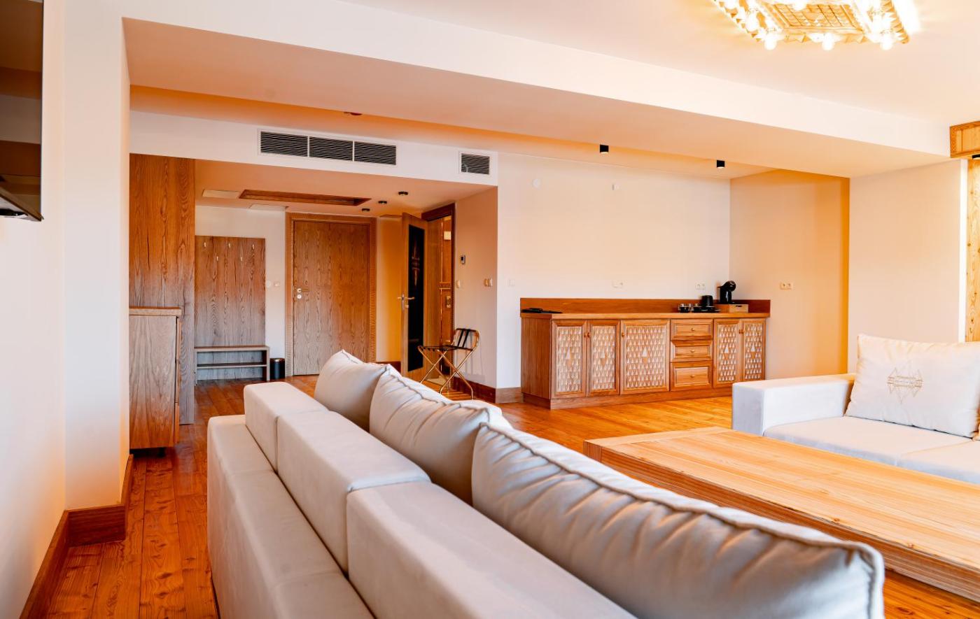 Apartament typu Deluxe Junior Suite. This spacious suite is comprised of 1 living room, 1 separate bedroom and 1 bathroom with a walk-in shower and free toiletries. Featuring a terrace with mountain views, this suite also offers a tea and coffee maker and a flat-screen TV. The unit offers 3 beds. Apartament typu Suite - 4 osobowy. Powierzchnia pokoju ok.: 53 mkw. ;