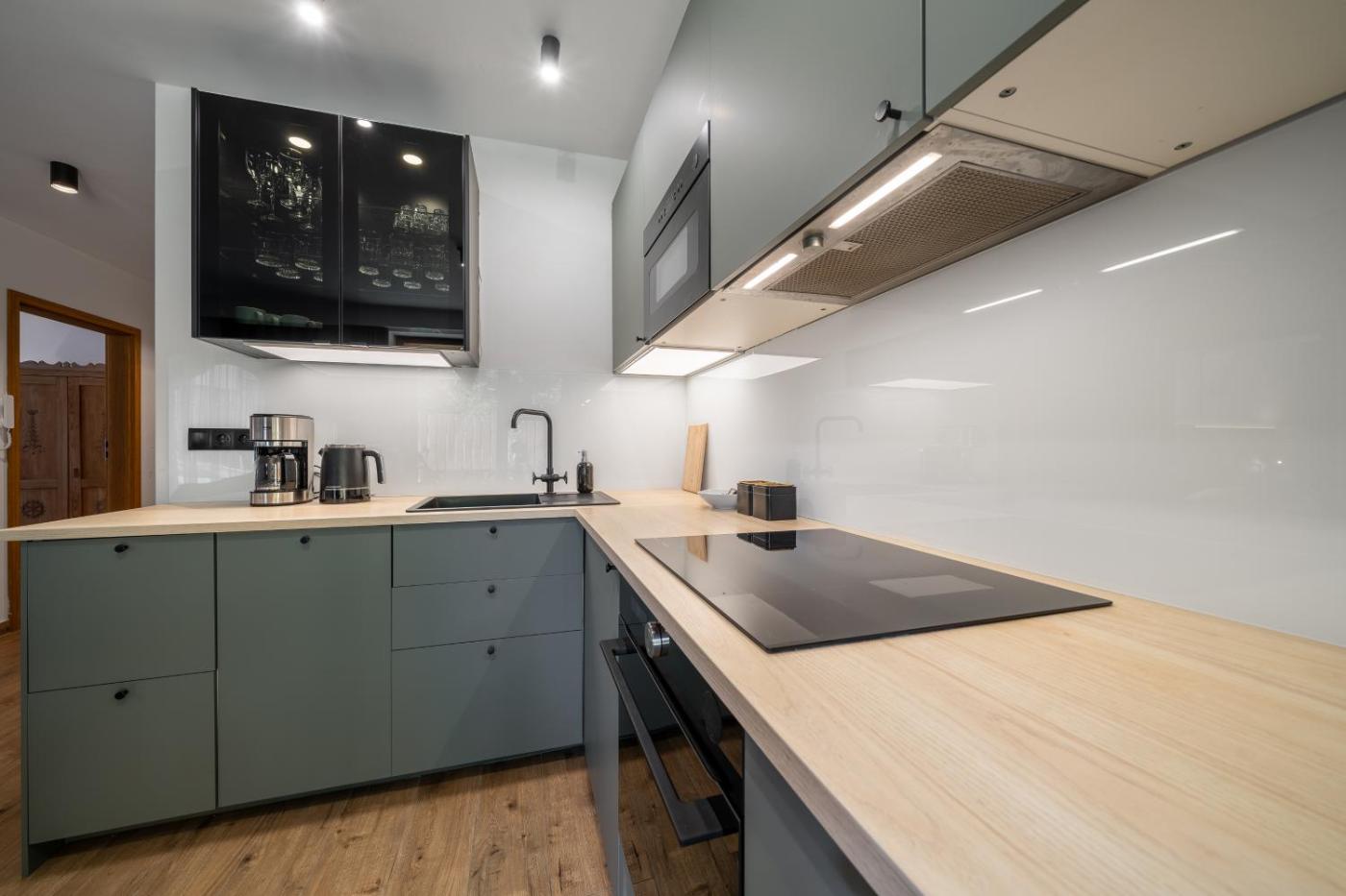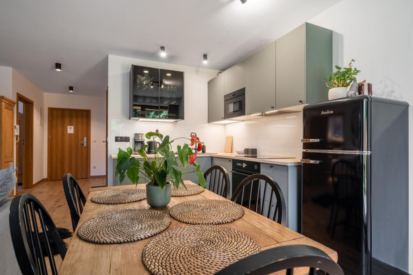 Oferta apartamentu obejmuje kilka sypialni (2), salon, aneks kuchenny z pełnym wyposażeniem, w tym lodówką i ekspresem do kawy, a także łazienkę (1) z prysznicem oraz bezpłatnym zestawem kosmetyków. W apartamencie zapewniono ręczniki i pościel.