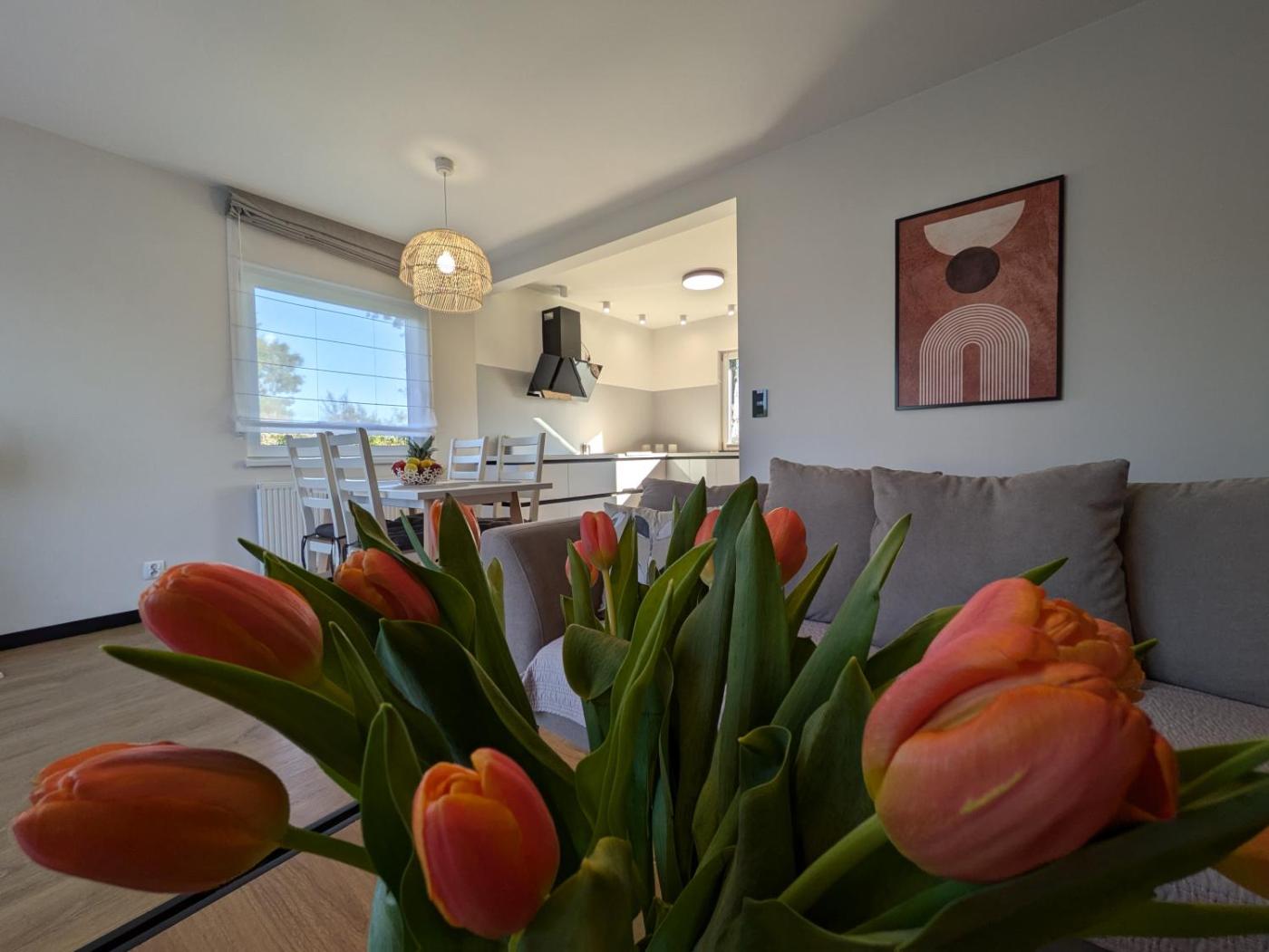 Dom z 2 sypialniami. Featuring a private entrance, this holiday home also comprises 2 bedrooms, a seating area and 1 bathroom with a bath and a shower. Guests will find a stovetop, a refrigerator, a dishwasher and kitchenware in the well-fitted kitchen. The holiday home also provides guests with a barbecue. Boasting a terrace with garden views, this holiday home also provides a washing machine and a flat-screen TV with cable channels. The unit offers 3 beds. Dom wakacyjny - 4 osobowy. Powierzchnia pokoju ok.: 80 mkw.